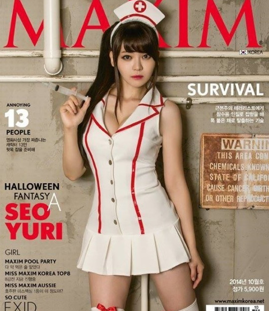 한편 '롤여신' 서유리의 맥심 화보가 새삼 인기다. 서유리는 맥심 화보에서 간호사복을 입고 주사기를 한 손에 들고 있다. 또 섹시한 표정을 하고 가슴이 훤히 보이는 터질듯한 의상을 입고 있어 보는 이들의 눈길을 사로잡았다.
