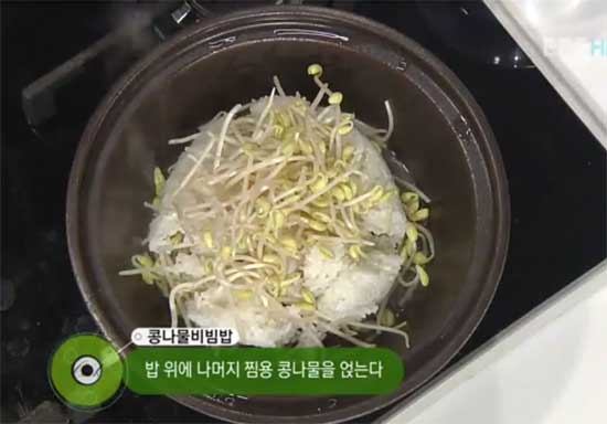 최근 온라인 커뮤니티에는 '콩나물 비빔밥 만드는 법'황금레시피가 소개됐다. 공개된 콩나물 비빔밥 만드는 법에 따르면 먼저 쌀을 깨끗이 씻어 30분 정도 불려 놓는다. 이어 콩나물을 다음어서 씻은 다음 밥 위에 올리고 취사를 한다.