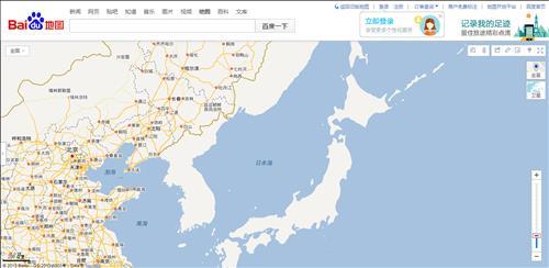 바이두에서 지도를 검색하면 동해를 일본해로 표기해놓고 있다.