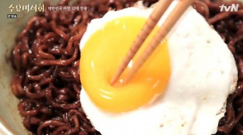 과거 tvN '수요미식회'에서는 라면을 주제로 이야기를 나눴다. 10위는 팔도 비빔면으로 뽑혔다. 신동엽은 "오이장아찌를 넣고 향좋은 참기름을 살짝 넣어 먹으면 최고다"라고 말했다.