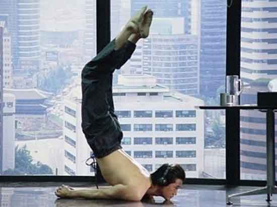 메뚜기 자세 요가는 영화 '올드보이'에서 배우 유지태가 선보인 요가 동작으로 화제가 된 바 있다.
