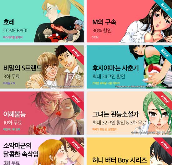 레진코믹스는 최근 무료 공개와 파격적인 할인가격의 웹툰 서비스를 실시했다. 해당 작품에는 '호레', '보글보글챱챱' 등 일반 독자를 위한 서비스 뿐만 아니라 '그녀는 관능소설가', '포미닛' 등의 성인 독자를 위한 웹툰도 포함됐다. 또 '이해불능','허니버터BOY 시리즈' 등 다양한 BL물도 무료와 할인행사에 참가했다. 이번 무료 관람 서비스는 약 3화분의 제한적인 관람으로 이후 관람은 코인을 이용해 유료로 볼 수 있다.