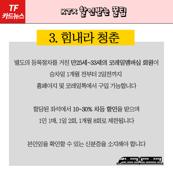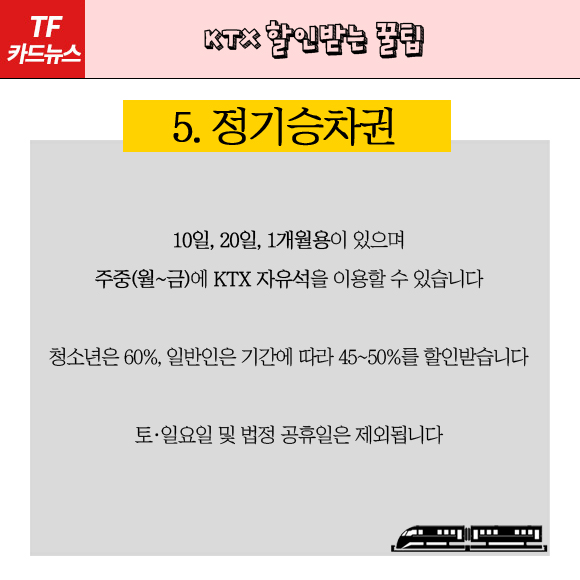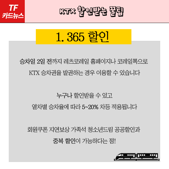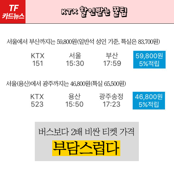 [TF카드뉴스] 너무 비싼 KTX 티켓? 할인받는 '꿀팁' 다섯 가지