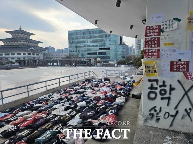 [더팩트ㅣ이다빈 기자] 남녀공학 전환 추진을 반대하며 본관 점거 등 시위를 벌여 형사 고소되고 징계 절차에 회부된 동덕여자대학교 학생들이 학교 측에 "보복성 법적 대응을 중단하라"고 촉구했다.