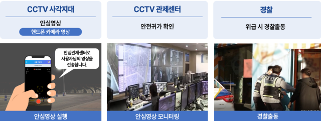 이용할 수 있는 서비스는 △위급상황 발생 시 경찰 출동을 요청할 수 있는 '긴급신고' △CCTV 영상 관제로 안심 귀갓길을 지원하는 '귀가모니터링' △안심시설이 많은 경로를 추천해 주는 '안심경로' △미리 등록한 가족·친구에게 실시간 위치정보를 공유해주는 '안심친구' 등이 있다. 서울시 전역에서 서비스를 이용할 수 있다.