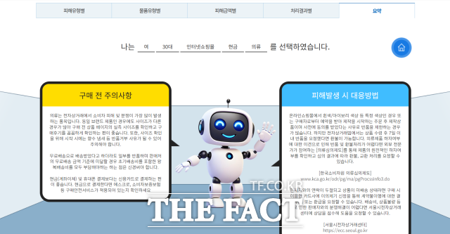 김명선 서울시 공정경제과장은 "이번 온라인 맞춤형 자가 진단 서비스는 소비자 스스로 피해를 예방하고 피해 발생 시, 보다 현명하게 대처할 수 있도록 돕는 데 의미가 있다"며 "앞으로도 축적된 데이터를 바탕으로 시민이 안심하고 온라인 쇼핑을 이용할 수 있도록 소비자 피해 예방에 앞장서겠다"고 말했다.