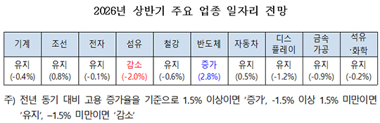 올해 상반기 일자리 전망 반도체만 '맑음'…섬유 감소 지속