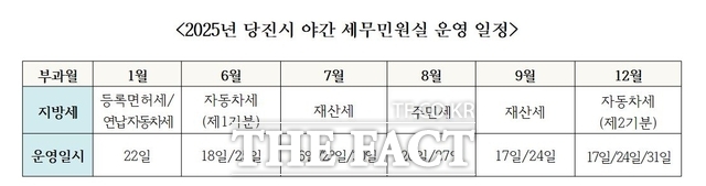 [더팩트ㅣ당진=천기영 기자] 충남 당진시는 생업 등으로 업무시간에 방문이나 전화 문의가 어려운 시민 불편 해소를 위해 올해부터 충남도 내 최초로 ‘야간 세무민원실’을 운영한다고 16일 밝혔다.