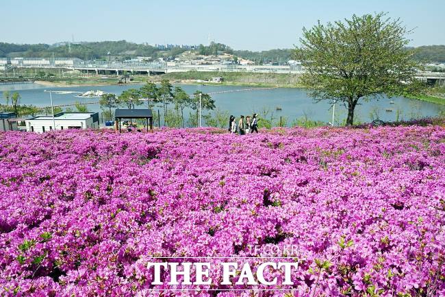 낮에는 호수의 고요함과 오난산전망공원 철쭉이 봄의 색을 가득 품고 시민을 맞는다. 철쭉 7만 본 사이에서 호수를 내려다보면 시원한 바람이 마음을 어루만진다.