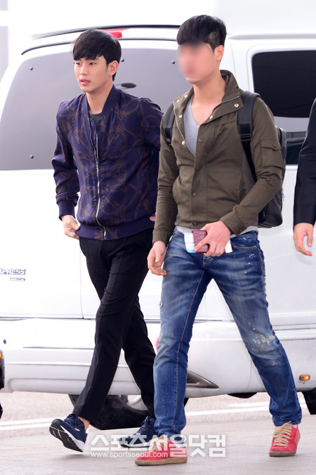 [ 인천국제공항=남윤호 기자]광저우로 출국하는 배우 김수현(왼쪽)이 3일 오전 인천국제공항 출국장으로 향하고 있다.