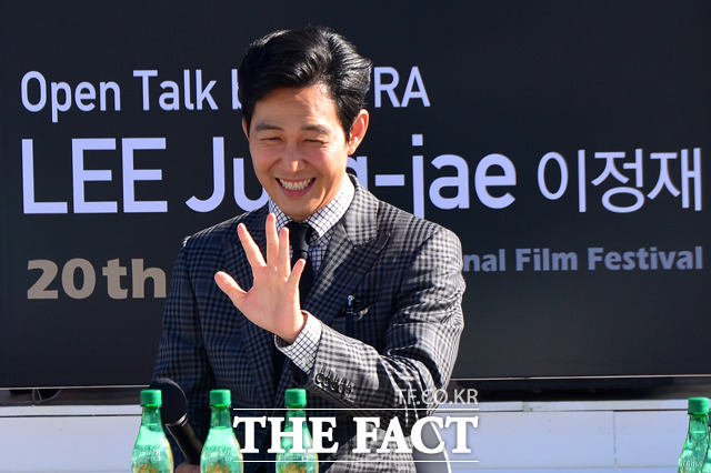 배우 이정재가가 2일 오후 부산광역시 해운대 비프빌리지에서 열린 오픈토크 더 보이는 인터뷰에 참석해 관객들에게 인사하고 있다.