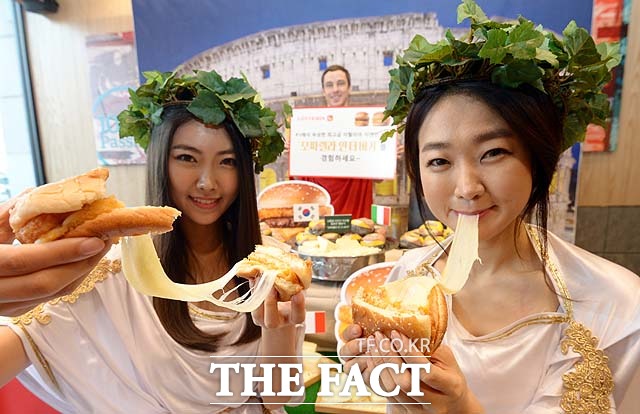 [더팩트│임영무 기자]롯데리아가 8일 오전 서울 서대문구 충정로 롯데리아 서대문역점에서 고품질 자연산 치즈로 만든 '모짜렐라 인 더 버거' 고객 사은 행사를 가졌다.
