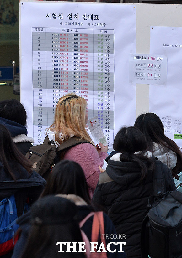 [TF포토] 2017 수능 실시,'고사장 확인하는 수험생들'