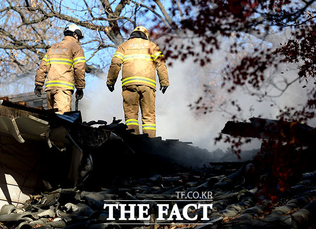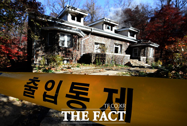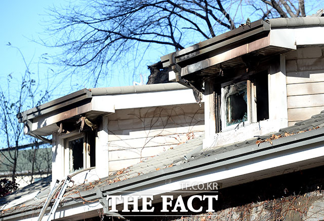 [TF포토] 불에 타버린 연세대 '언더우드가 기념관'