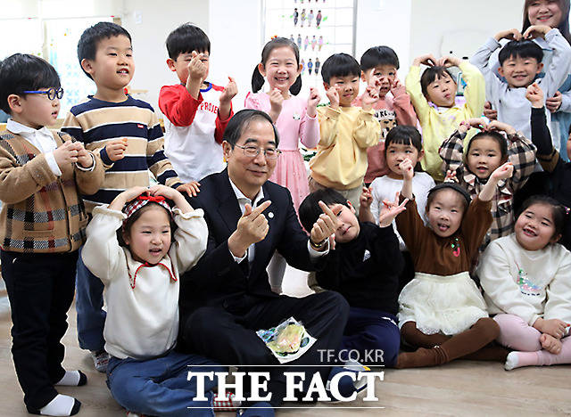 [더팩트ㅣ임영무 기자] 한덕수 국무총리가 24일 오전 서울 구로구 구로삼성어린이집을 방문해 어린이들과 기념 사진을 찍고 있다.