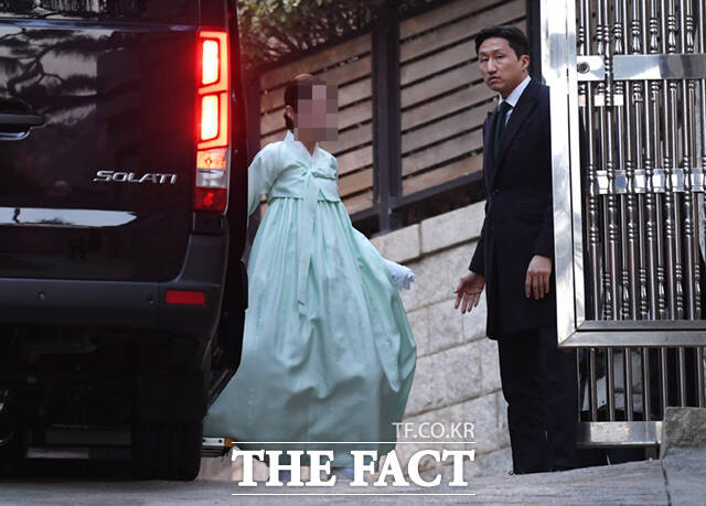 [더팩트ㅣ이새롬 기자] 고 정주영 현대그룹 명예회장의 23주기를 맞아 범현대가(家)가 20일 오후 서울 종로구 정 명예회장의 옛 청운동 자택에 모인 가운데, 정기선 HD현대 부회장 부부가 자택에 들어서고 있다. 범 현대가는 매년 기일 전날인 3월 20일 청운동에 모여 함께 제사를 지낸다.
