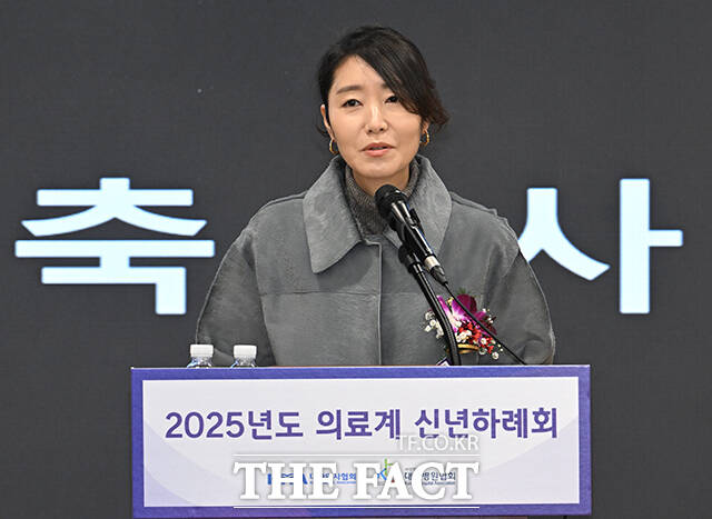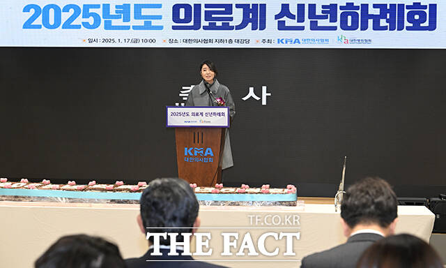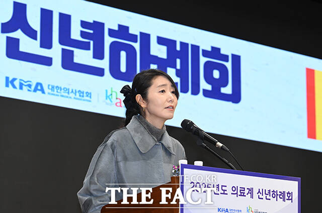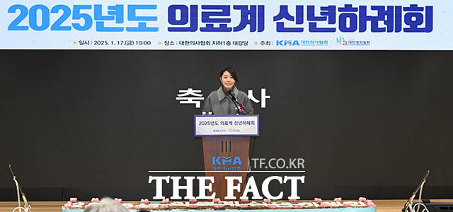 [더팩트ㅣ박헌우 기자] 강선우 더불어민주당 의원이 17일 오전 서울 용산구 대한의사협회에서 열린 '2025년 의료계 신년하례회'에 참석해 축사를 하고 있다.