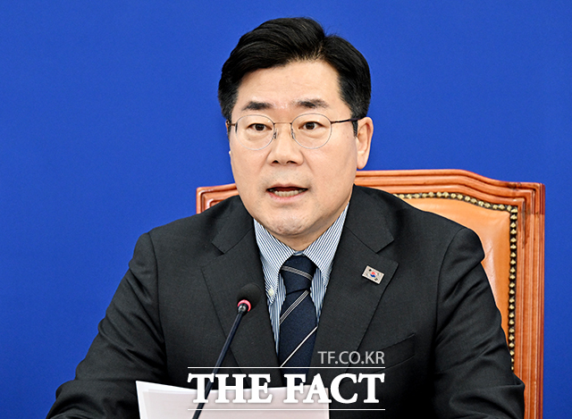 [더팩트ㅣ국회=배정한 기자] 박찬대 더불어민주당 원내대표가 20일 오전 서울 여의도 국회에서 서울서부지방법원 폭동사태 관련 긴급 기자회견을 열고 발언을 하고 있다.hany@tf.co.kr사진영상기획부 photo@tf.co.kr