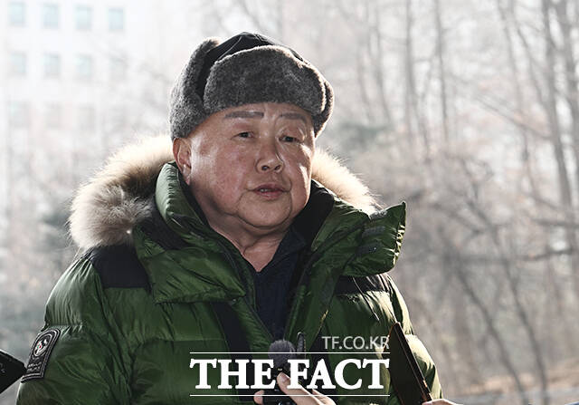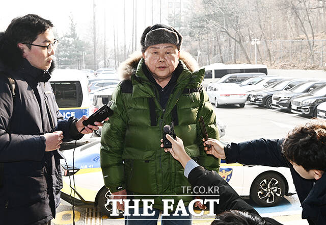 [더팩트ㅣ박헌우 기자] 윤석열 대통령의 부인 김건희 여사에 대한 '쥴리 의혹'을 제기해 온 안해욱 전 한국초등학교태권도연맹 회장이 20일 오후 서울 서초구 서초경찰서에 조사를 받기 위해 출석하며 입장을 밝히고 있다.