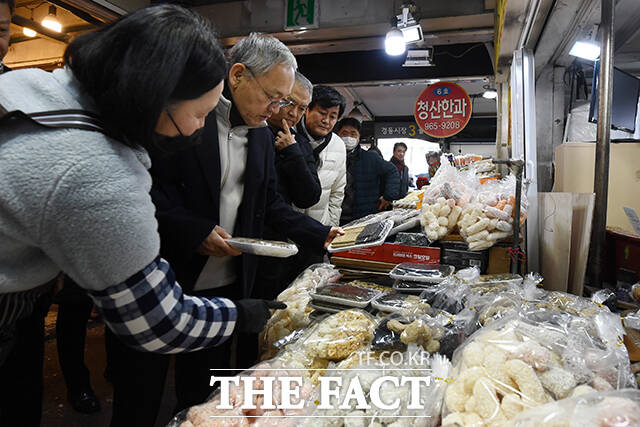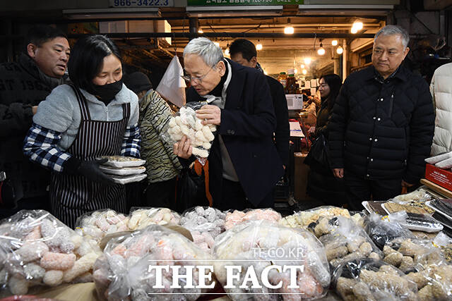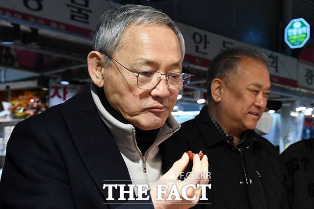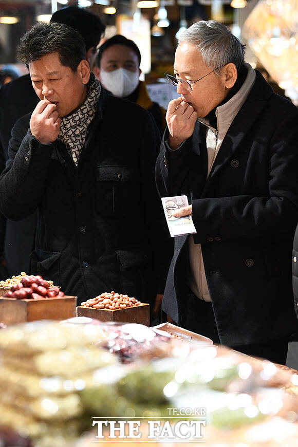 [더팩트ㅣ서예원 기자] 유인촌 문화체육관광부 장관이 설 명절을 앞둔 24일 오전 서울 동대문구 경동시장을 방문해 대추를 구매하고 있다.