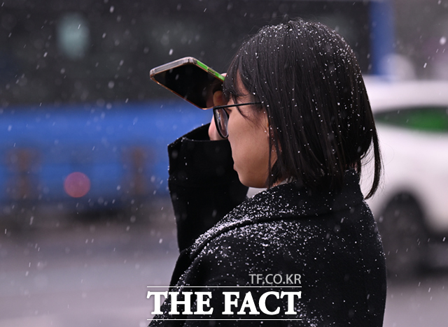[더팩트ㅣ이새롬 기자] 서울을 비롯한 중부지방에 눈이 내리는 31일 오후 서울 종로구 광화문 일대에서 시민들이 눈을 맞으며 이동하고 있다.