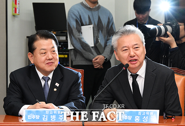 [더팩트ㅣ국회=배정한 기자] 홍성국 더불어민주당 최고위원(오른쪽)이 7일 오전 서울 여의도 국회에서 열린 최고위원회의에 참석해 모두발언을 하고 있다.