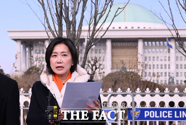 [더팩트ㅣ국회=이새롬 기자] 허은아 전 대표가 10일 서울 여의도 국회 앞에서 기자회견을 열고 대표직 상실과 관련한 입장을 밝히고 있다.