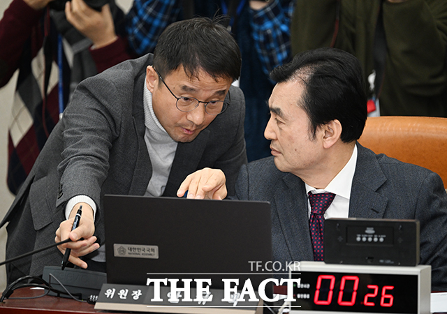 [더팩트ㅣ국회=박헌우 기자] 한병도 더불어민주당 의원(왼쪽)과 안규백 국조특위 위원장이 13일 오전 서울 여의도 국회에서 열린 '윤석열 정부의 비상계엄 선포를 통한 내란 혐의 진상규명 국정조사 특별위원회' 전체회의에 참석해 대화를 나누고 있다.cjg05023@tf.co.kr사진영상기획부 photo@tf.co.kr