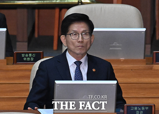 [더팩트ㅣ국회=박헌우 기자] 김문수 고용노동부 장관이 14일 오후 서울 여의도 국회에서 열린 본회의에 참석하고 있다.