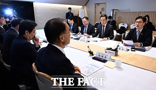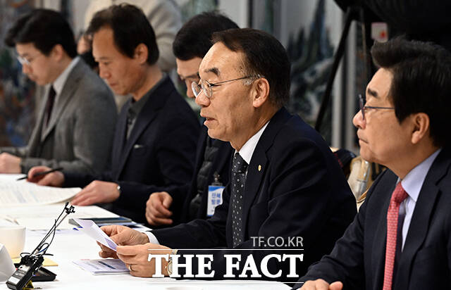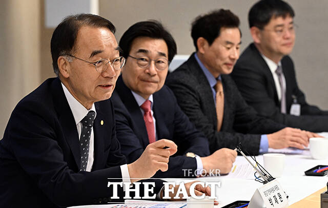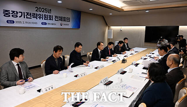 박재완 중장기전략위원장(가운데)이19일 오전 서울 종로구 정부서울청사에서 열린 중장기전략위원회 전체회의에 참석해 모두발언을 하고 있다. /임영무 기자
