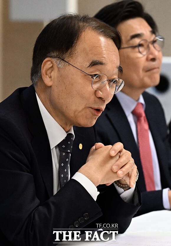 [더팩트ㅣ임영무 기자] 박재완 중장기전략위원장이19일 오전 서울 종로구 정부서울청사에서 열린 중장기전략위원회 전체회의에 참석해 모두발언을 하고 있다.