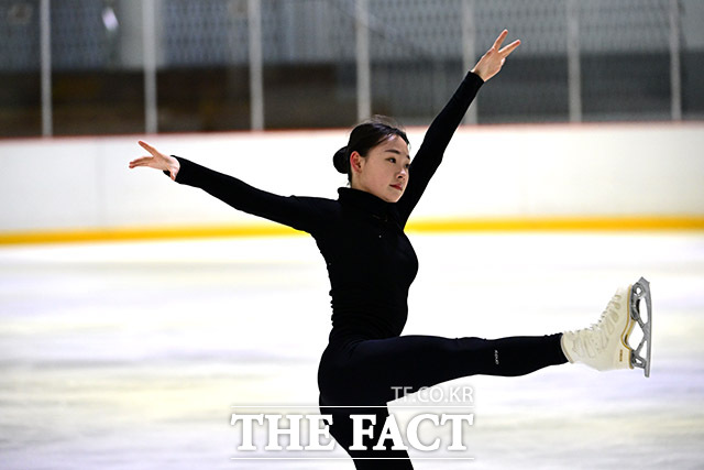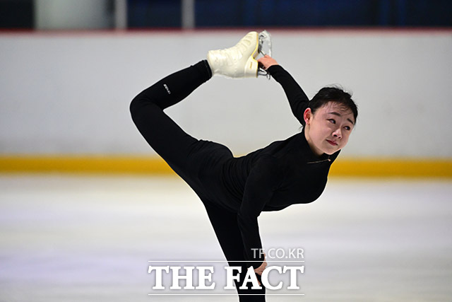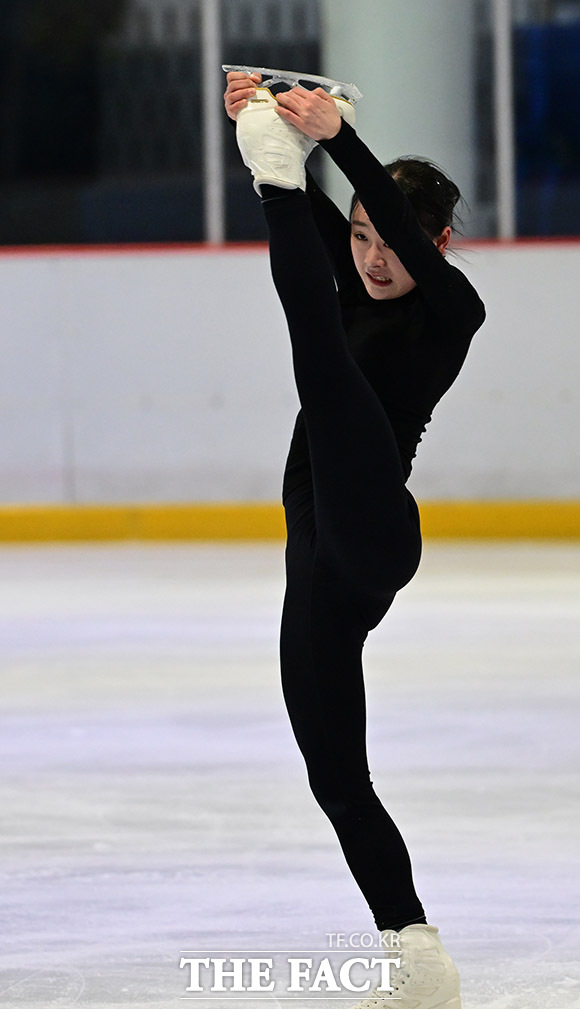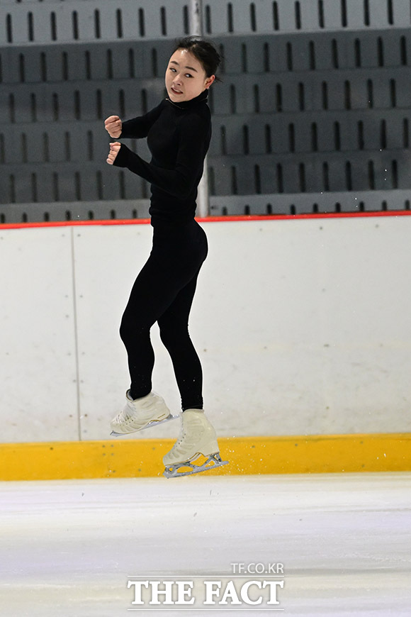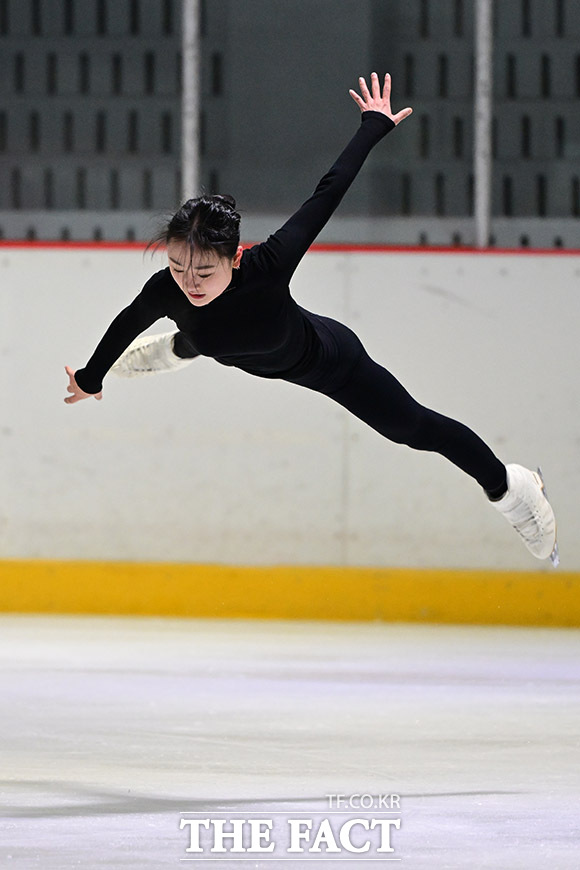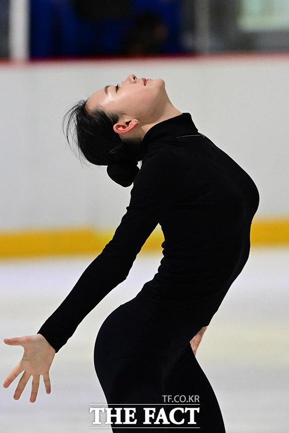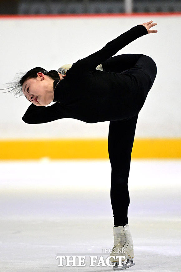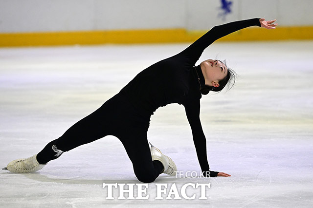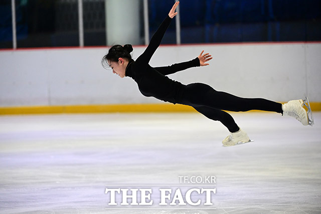 [더팩트ㅣ남윤호 기자] 피겨 김채연이 19일 서울 양천구 목동 아이스링크에서 '2025 ISU(국제빙상연맹) 사대륙 피겨스케이팅 대회' 개막을 하루 앞두고 연습에 매진하고 있다.