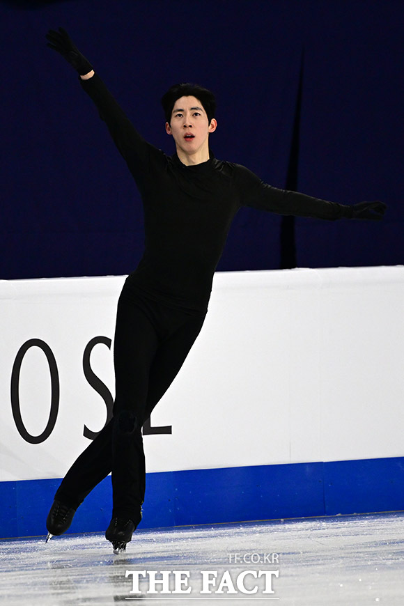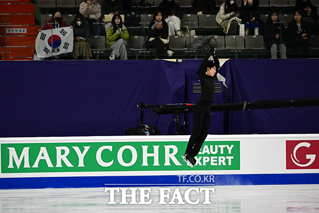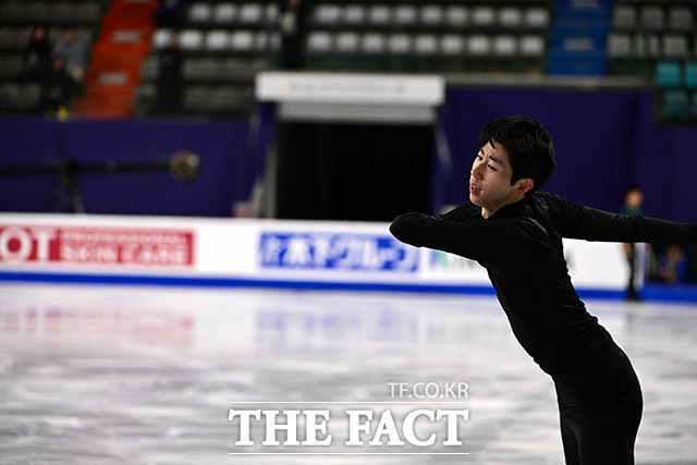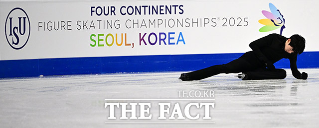 [더팩트ㅣ남윤호 기자] 피겨 이시형이 19일 서울 양천구 목동 아이스링크에서 '2025 ISU(국제빙상연맹) 사대륙 피겨스케이팅 대회' 개막을 하루 앞두고 연습 연기를 펼치며 고공 점프를 시도하고 있다.