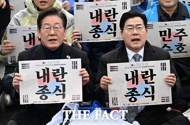 이날 이재명 대표는 "보수의 탈을 쓴 채 헌법과 법치를 파괴하는 이들을 넘어서 민주주의를 회복해야 한다"며 "진정한 보수의 가치를 회복하고 진보와 보수가 합리적으로 경쟁하는 정상 사회를 향해 나아가야 한다"고 밝혔다.