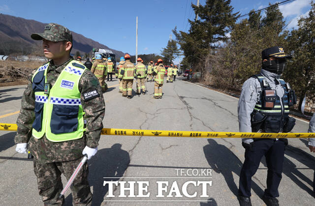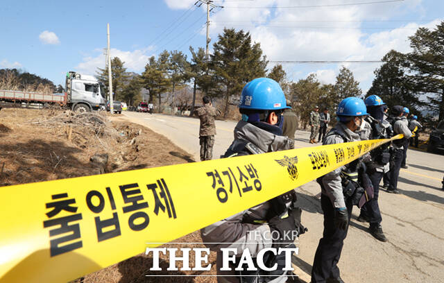 [더팩트ㅣ이새롬 기자] 6일 경기 포천시 승진훈련장에서 열린 한미연합훈련 중 포탄이 민가에 떨어져 인명 피해가 발생한 가운데, 사고가 난 노곡리 마을 일대가 통제되고 있다.
