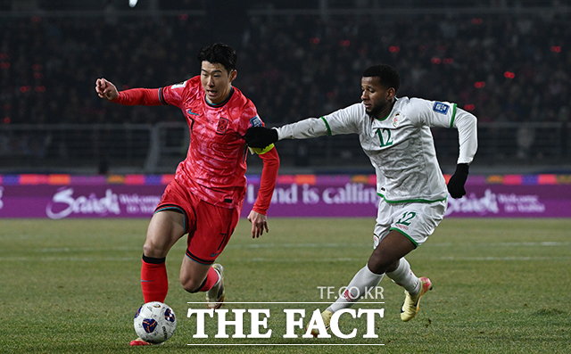 [더팩트|고양종합운동장=박헌우 기자] 대한민국과 오만의 2026 FIFA 북중미 월드컵 3차 예선전이 20일 오후 경기 고양시 고양종합운동장에서 열린 가운데 손흥민이 드리블을 하고 있다.