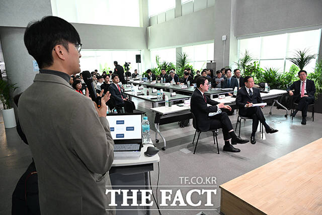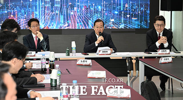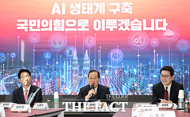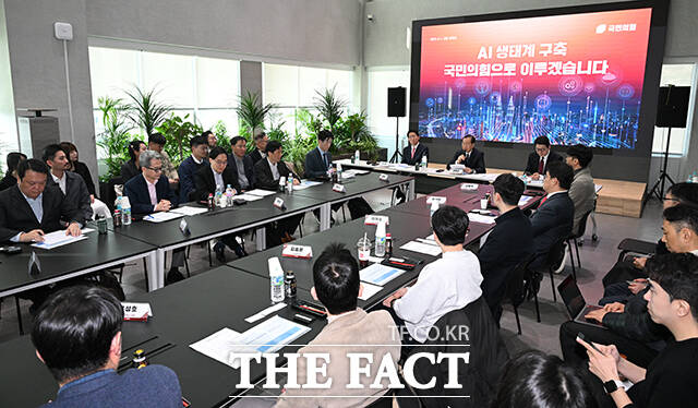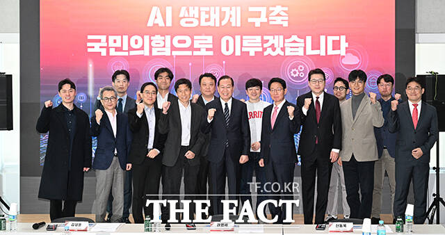 [더팩트ㅣ박헌우 기자] 'AI 생태계 구축 국민의힘으로 이루겠습니다' 간담회가 1일 오전 서울 서초구 서울 AI 허브에서 열린 가운데 권영세 국민의힘 비상대책위원장 등 참석자들이 기념촬영을 하고 있다.
