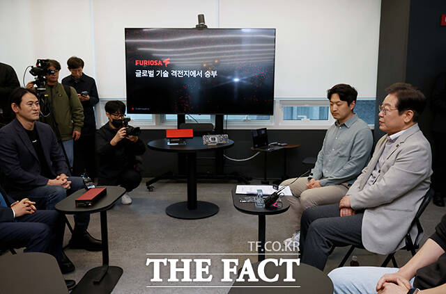[더팩트ㅣ남윤호 기자] 이재명 더불어민주당 대선 예비후보가 AI 정책·공약을 발표한 후 인공지능(AI) 반도체 팹리스 기업인 퓨리오사 AI를 방문했다.