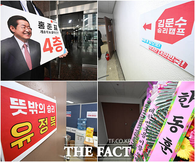 [더팩트ㅣ박헌우 기자] 오는 6월 3일 치러지는 '제21대 대통령 선거'를 위해 국민의힘 주자 김문수 전 고용노동부 장관, 유정복 인천시장, 한동훈 전 대표, 홍준표 전 대구시장의 경선 캠프가 서울 여의도 대하빌딩에 차려졌다.