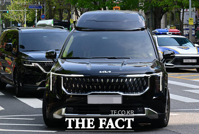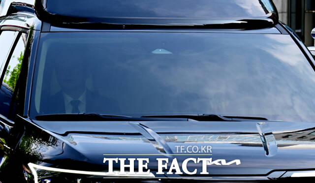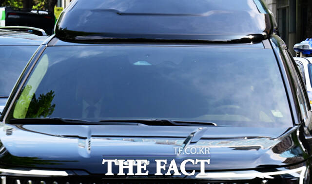 [더팩트ㅣ이새롬 기자] 내란 우두머리 혐의로 기소돼 2차 공판을 앞둔 윤석열 전 대통령 차량이 21일 서울 서초구 서울중앙지방법원에 들어서고 있다.
