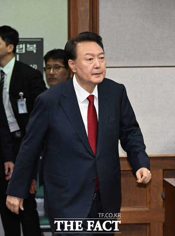 윤 전 대통령은 이날 오전 10시 서울법원종합청사 417호 대법정에서 서울중앙지법 형사합의25부(부장 지귀연) 심리로 열린 내란 우두머리 혐의 사건 2차 공판에 출석했다.