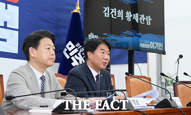[더팩트ㅣ국회=박헌우 기자] 더불어민주당 김건희·윤석열 100대 비리 의혹 국민 특별 검증단 이기헌 의원(오른쪽)이 22일 오전 서울 여의도 국회에서 '김건희·윤석열 100대 비리 의혹 국민특검 10차 브리핑'을 열고 발언하고 있다.cjg05023@tf.co.kr사진영상기획부 photo@tf.co.kr