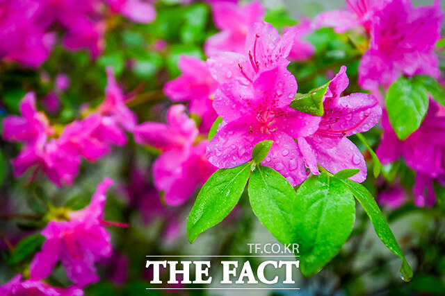 [더팩트ㅣ장윤석 기자] 전국에 봄비가 내리는 22일 오후 서울 서초구 교대역 일대에 핀 꽃 위로 빗방울이 맺혀있다.