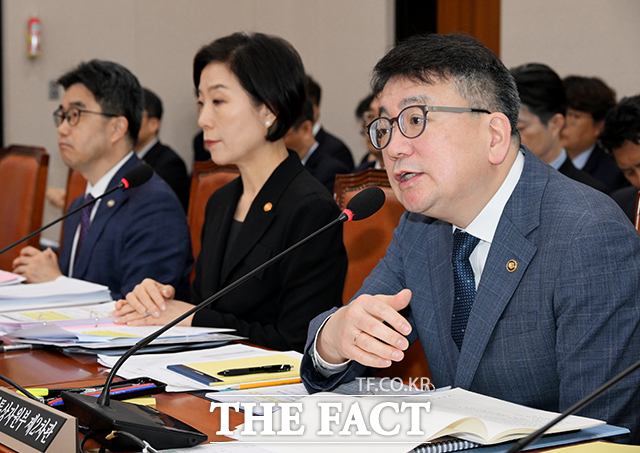 [더팩트ㅣ국회=배정한 기자] 최남호 산업통상자원부 2차관(오른쪽)이 23일 오전 서울 여의도 국회에서 열린 산업통상자원중소벤처기업위원회 전체회의에 참석해 질의에 답변을 하고 있다.hany@tf.co.kr사진영상기획부 photo@tf.co.kr