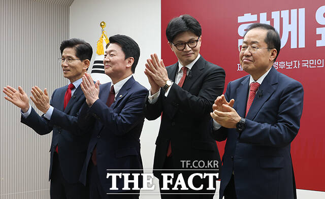 [더팩트ㅣ남윤호 기자] 김문수, 안철수, 한동훈, 홍준표(가나다 순) 국민의힘 대통령선거 후보가 23일 '1대1 토론' 상대를 결정지었다.