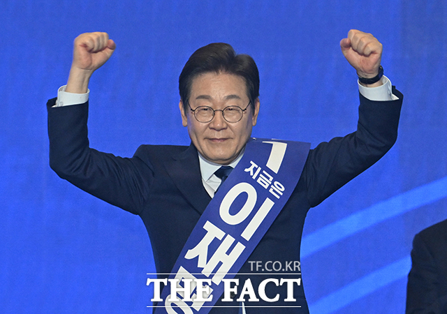 [더팩트|고양=박헌우 기자] 이재명 더불어민주당 경선 후보가 27일 오후 경기 고양시 킨텍스에서 열린 더불어민주당 제21대 대통령선거 후보자 선출을 위한 수도권·강원·제주 합동연설회에 참석해 인사를 하고 있다.
