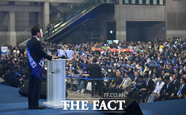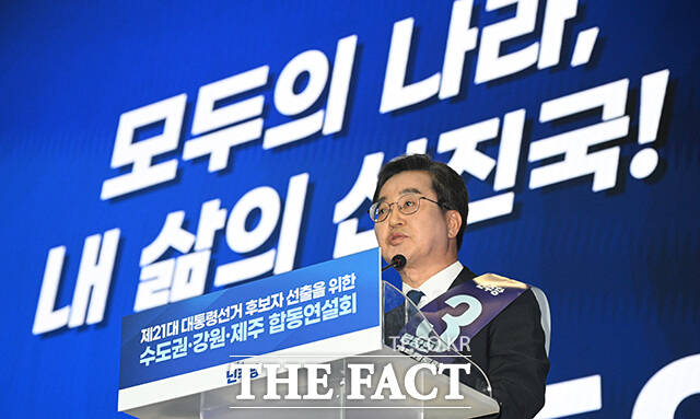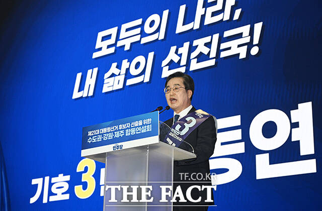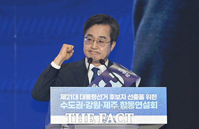 [더팩트|고양=박헌우 기자] 김동연 더불어민주당 대선 경선 후보가 27일 오후 경기 고양시 킨텍스에서 열린 더불어민주당 제21대 대통령선거 후보자 선출을 위한 수도권·강원·제주 합동연설회에 참석해 정견발표를 하고 있다.