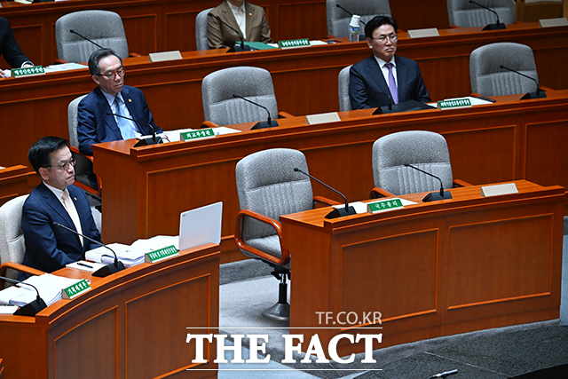 [더팩트ㅣ국회=박헌우 기자] 28일 오전 서울 여의도 국회에서 열린 예산결산특별위원회 전체회의에 한덕수 대통령 권한대행 국무총리의 자리가 비어 있다.