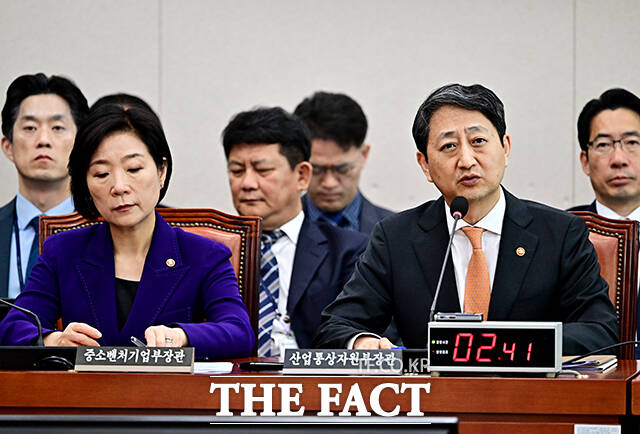 [더팩트ㅣ국회=배정한 기자] 안덕근 산업통상자원부 장관이 29일 오전 서울 여의도 국회에서 열린 산업통상자원중소벤처기업위원회 전체회의에 참석해 질의에 답변을 하고 있다.