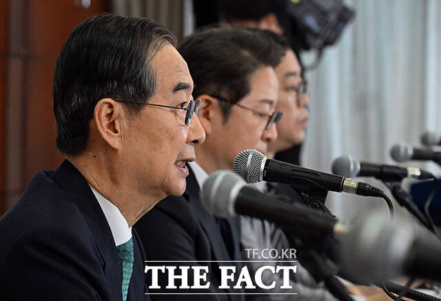 [더팩트ㅣ임영무 기자] 한덕수 무소속 대선 예비 후보가 6일 서울 종로구 코리아나호텔에서 열린 '대통령 후보 초청 관훈토론회'에 참석해 발언을 하고 있다.